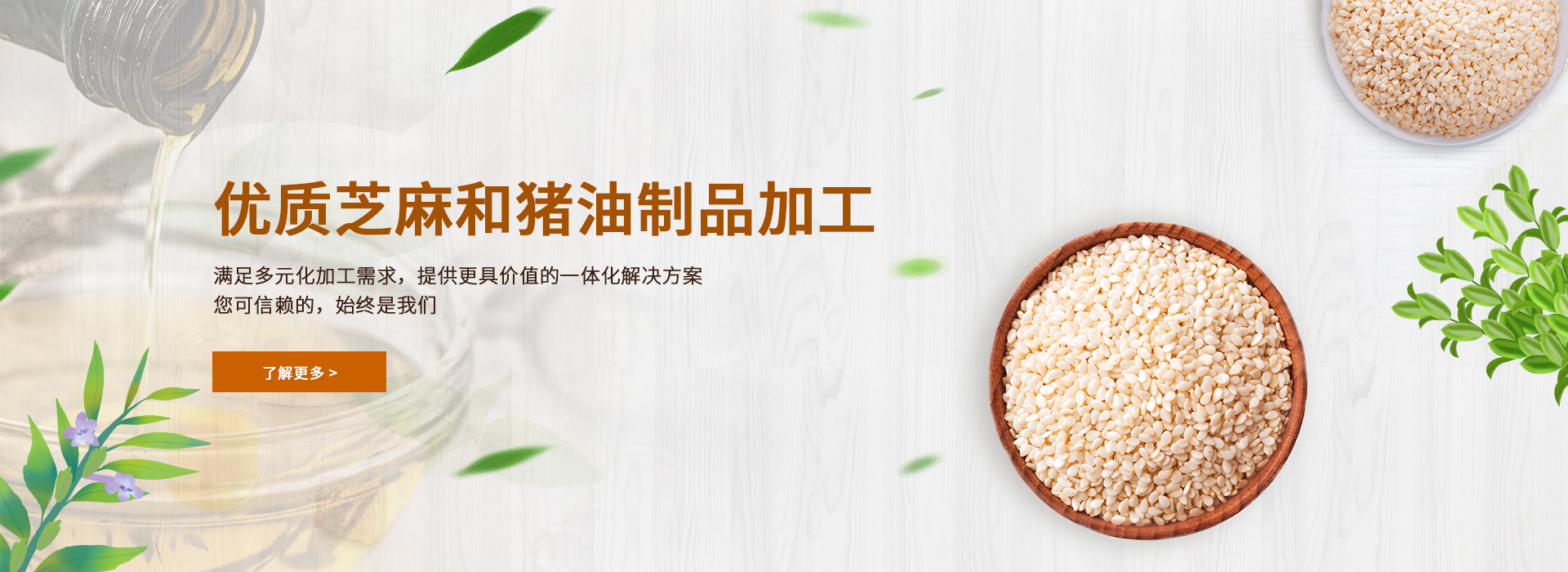 公司主要產品有機榨芝麻油、脫皮芝麻、香炒芝麻和芝麻醬等麻制品。產品暢銷全國各地,并出口至日本、韓國、新加坡及歐美市場,是油脂、食品和調味品行業重要的原料供應商。